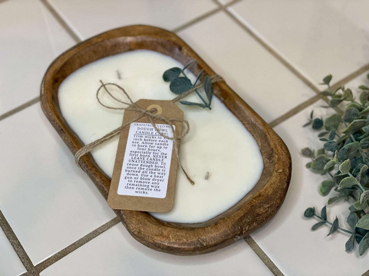 WOODEN BOWL CANDLESLooking for a unique and rustic type of candle? These gorgeous wooden bowls make an eye-catching centerpiece for any room or table in your home. They are hand-carved dough bowls so all of them are one of a kind and will vary in size. The smooth textures of this real Spanish Oak wood are natural and not machine made. Wooden Bowl candles are the perfect décor piece to add to any room. This 3-wick candle holds 17 ounces of wax and will burn for over 50 hours.